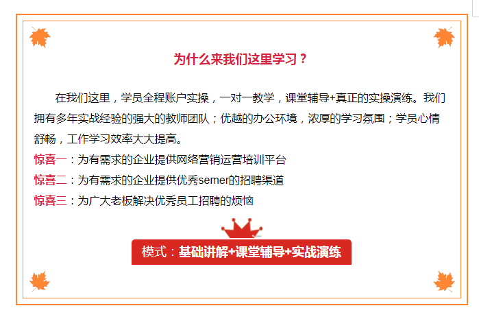 驚喜一:為有需求的企業(yè)提供網絡營銷運營培訓平臺